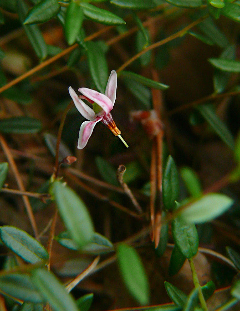 Trafiło mi się szczęśliwie, że przy odwiedzinach na torfowisku trafiłam na czas, kiedy żurawina zaczynała kwitnąć. Niestety kwiatki były pojedyncze i niewielki miałam wybór obiektów do fotografowania ale i tak cieszę się, że trafiłam na kwiaty w ogóle. Do niedawna w ogóle nie miałam pojęcia jak wyglądają.