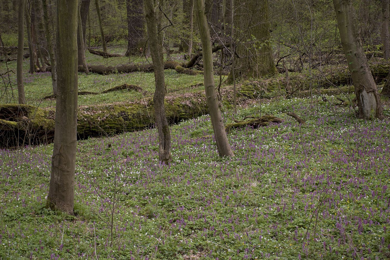 Kokorycz pusta (Corydalis cava) i zawilec gajowy (Anemone nemorosa L.)