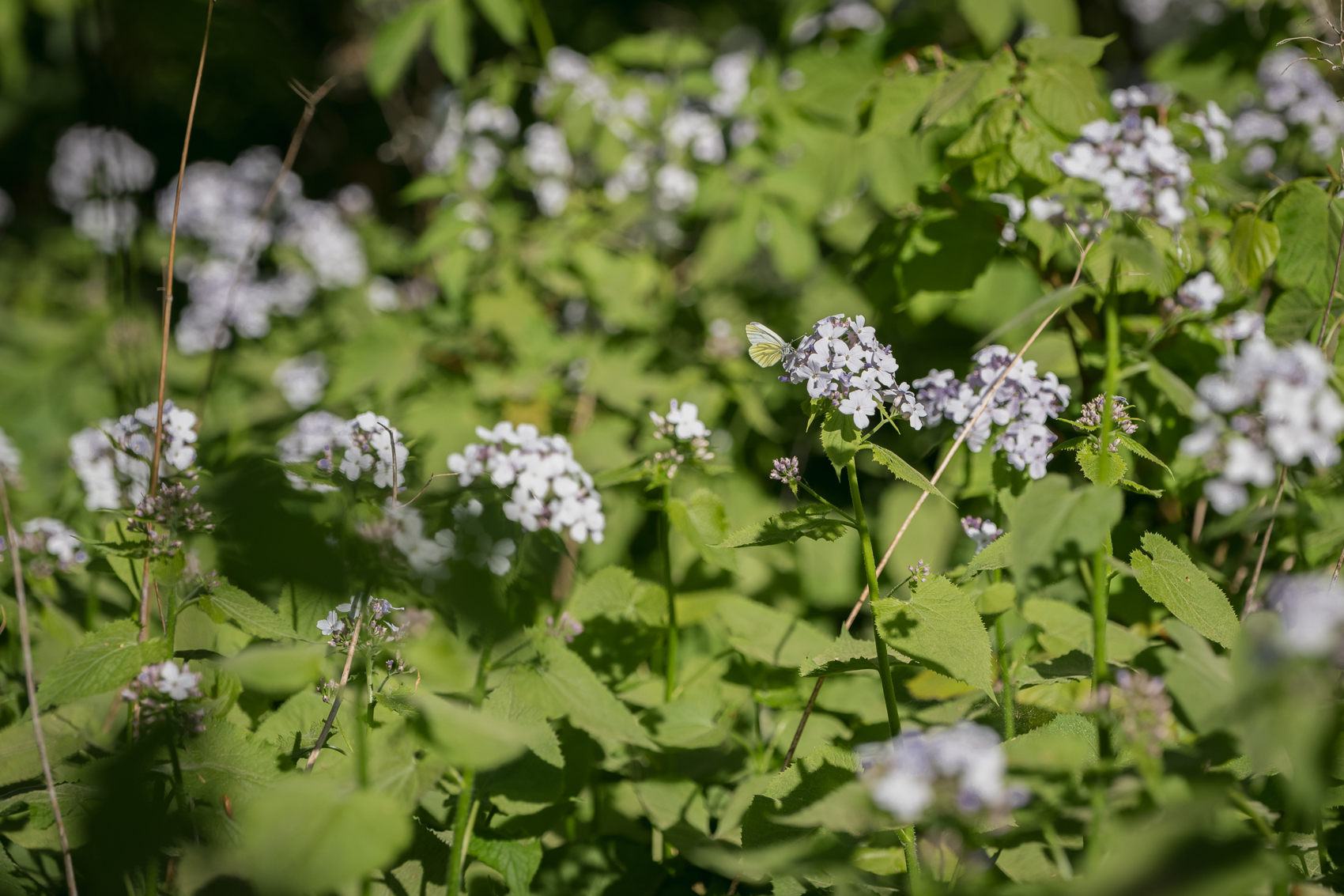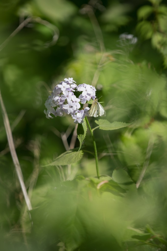 Miesiącznica trwała Lunaria rediviva i bielinek kapustnik