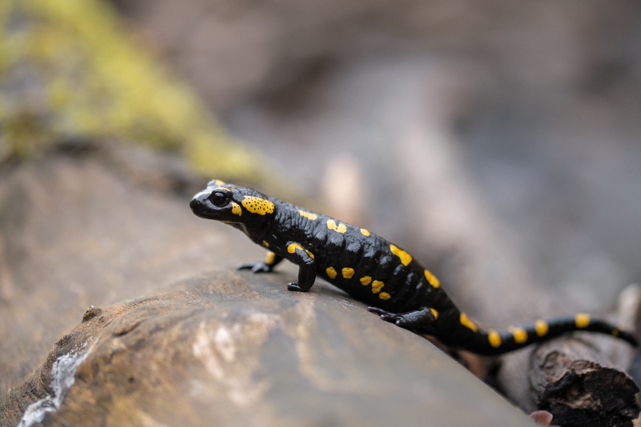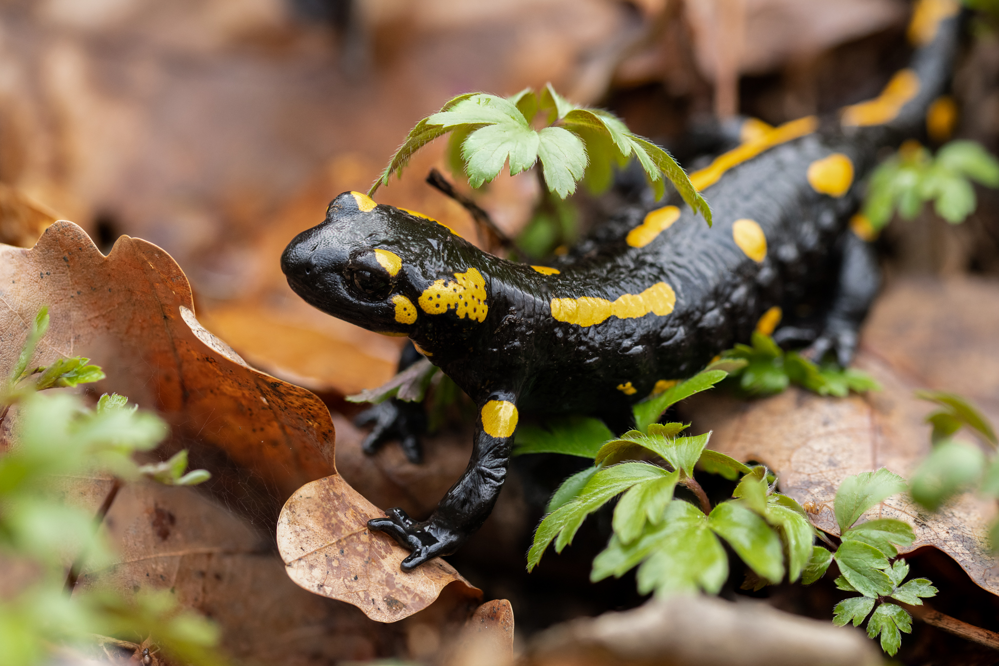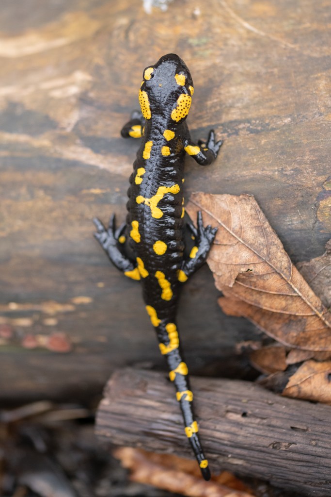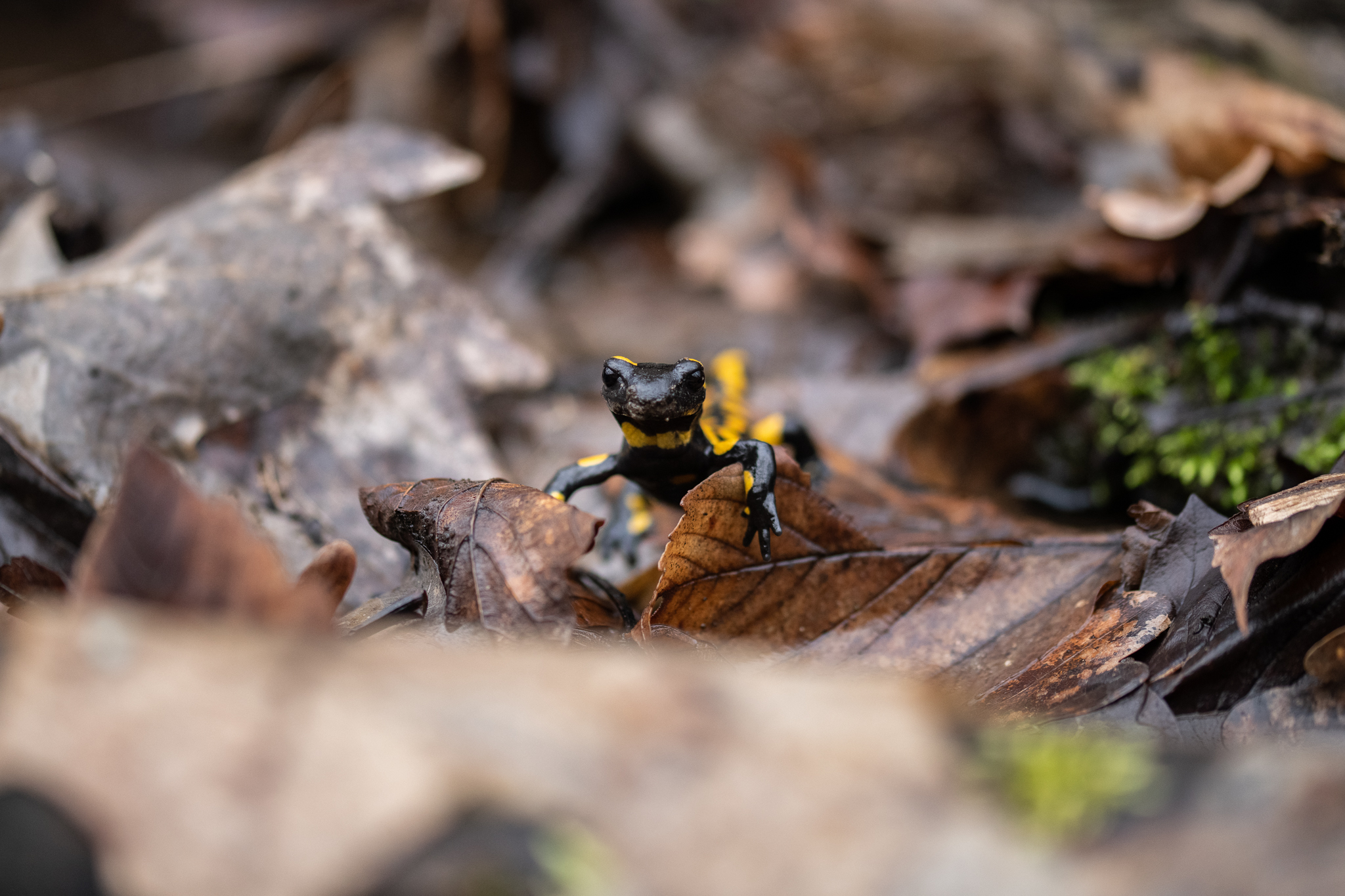 Dojechałam na miejsce godzinę po wschodzie słońca, zresztą słońce prędko schowało się za chmury. Pierwsza salamandra siedziała na środku. Druga jakieś 100 m dalej tuż obok ścieżki. Kolejne pojawiały się co chwila, w końcu przestałam liczyć, a jak już doszłam do strumienia to cały czas miałam conajmniej jedną w polu widzenia. Salamandrowe El Dorado!